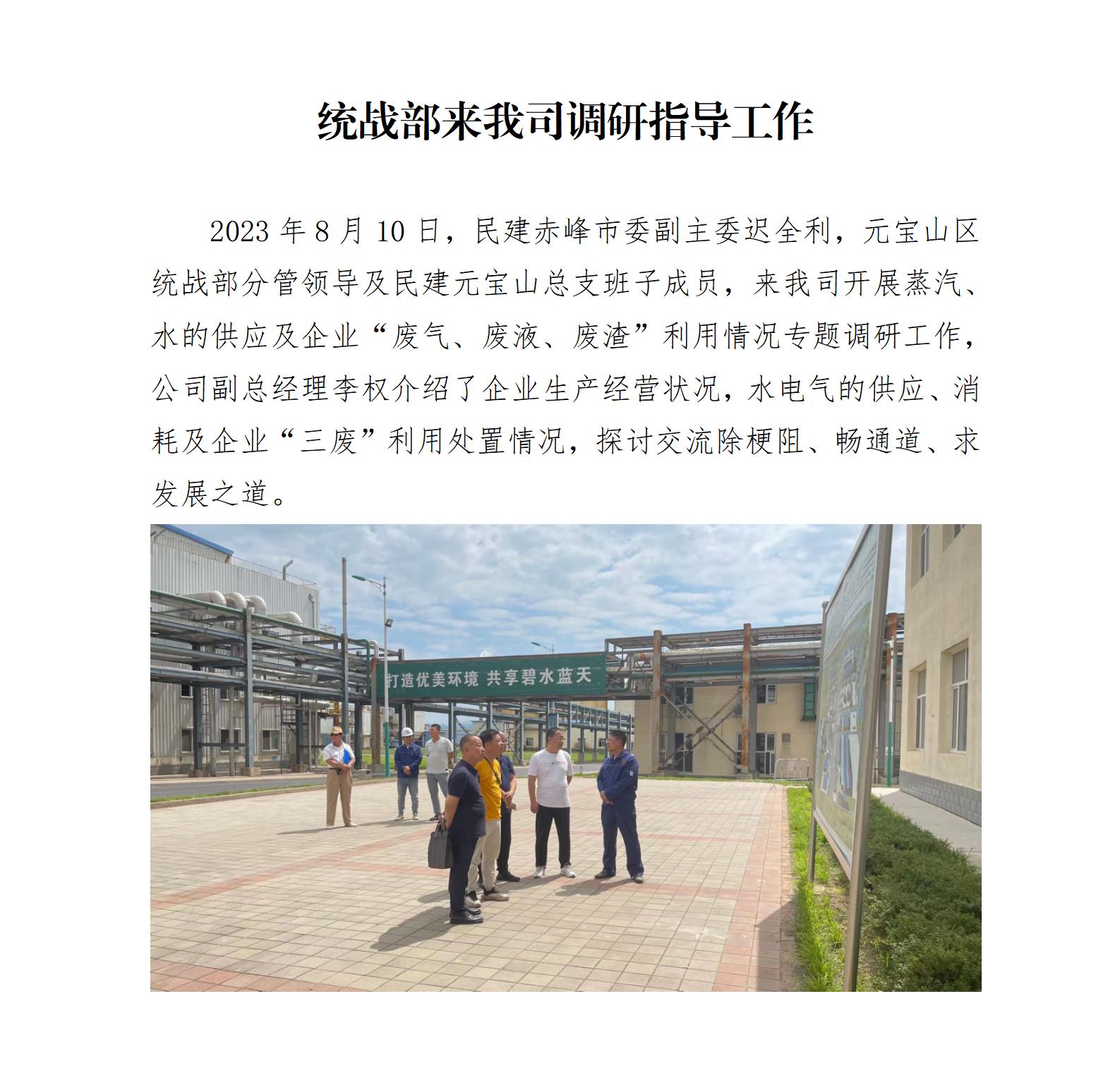 元寶山統(tǒng)戰(zhàn)部來我司調研指導工作