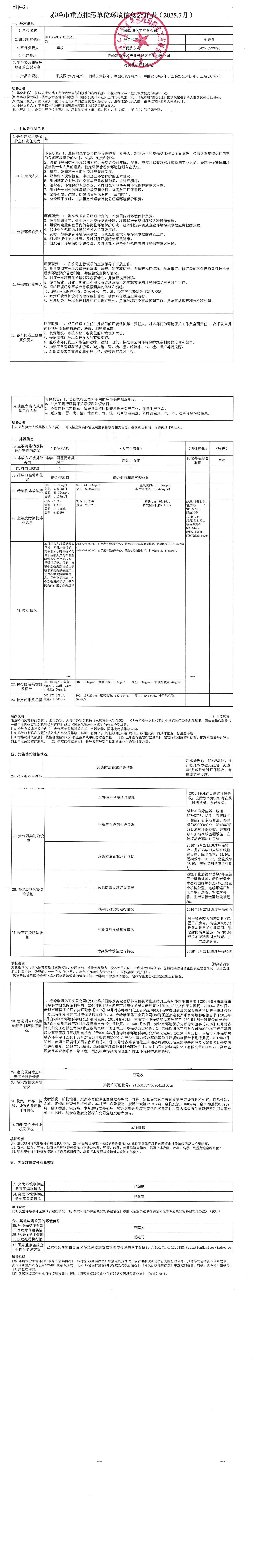 赤峰市重點排污單位環(huán)境信息公開表【2025.07】