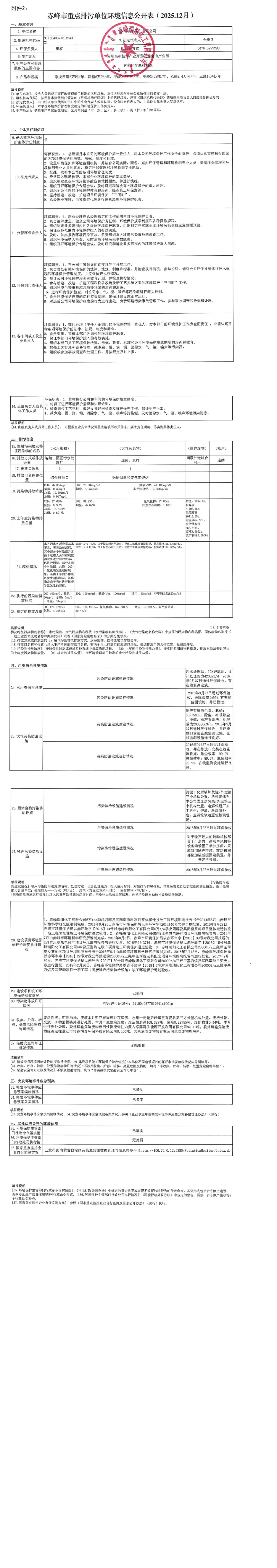 赤峰市重點排污單位環(huán)境信息公開表【2025.12】